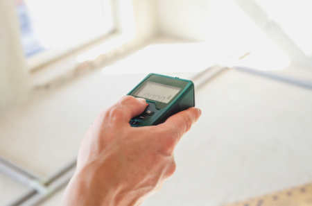 - Lazerinis matuoklis – nors brangesnis, tačiau suteikia didesnį tikslumą, ypač matuojant didesnius plotus ar aukštas lubas.