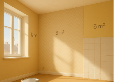 Žinant tikslų sienų kvadratūros plotą, galima apskaičiuoti reikiamų apdailos medžiagų kiekį:
