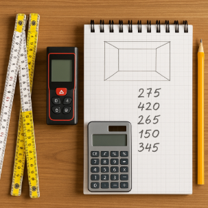 - Pridėkite atsargos – ypač dirbant su plytelėmis ar tapetais, skaičiuokite 5-10% daugiau nei išmatuota dėl pjaustymų ir galimų klaidų.